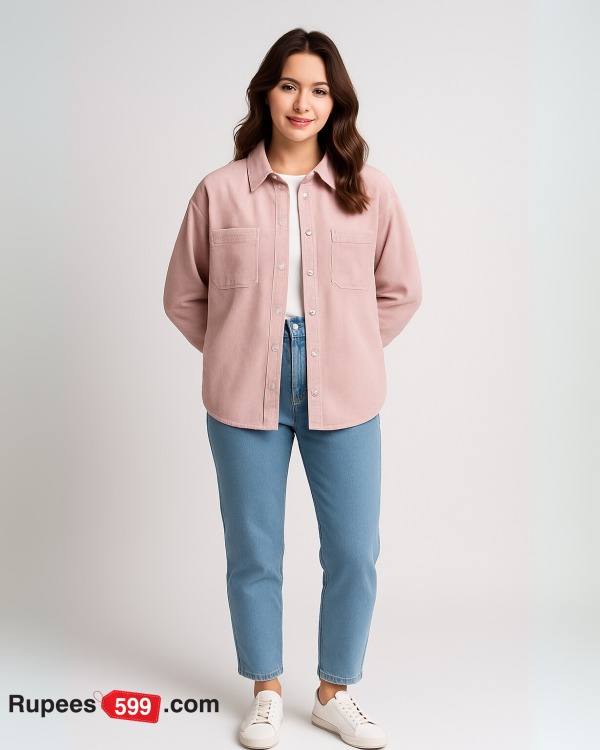 Ladies Corduroy Button-Down Shirt – Pink