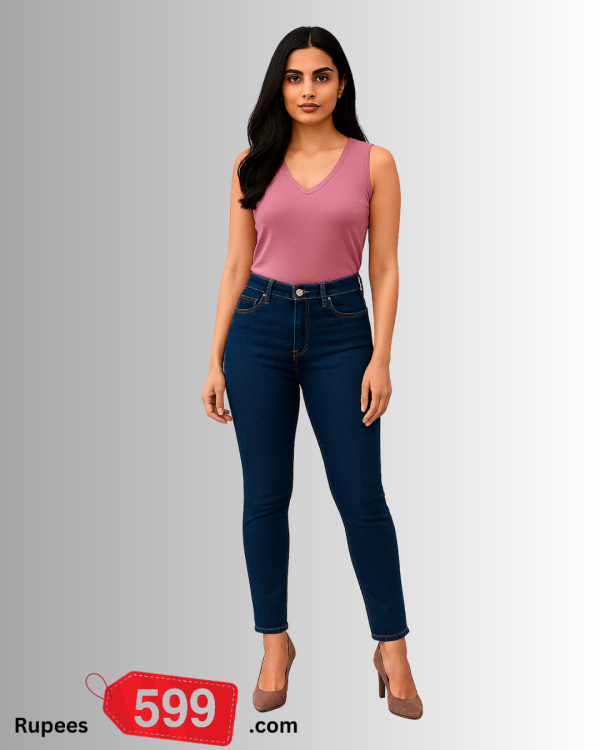 Crafted from premium stretch denim, this pair contours smoothly from waist to ankle, offering flexibility without losing its shape. The high‑rise waistband provides a flattering, supportive fit, making these denims ideal for everyday wear, work, or going out.