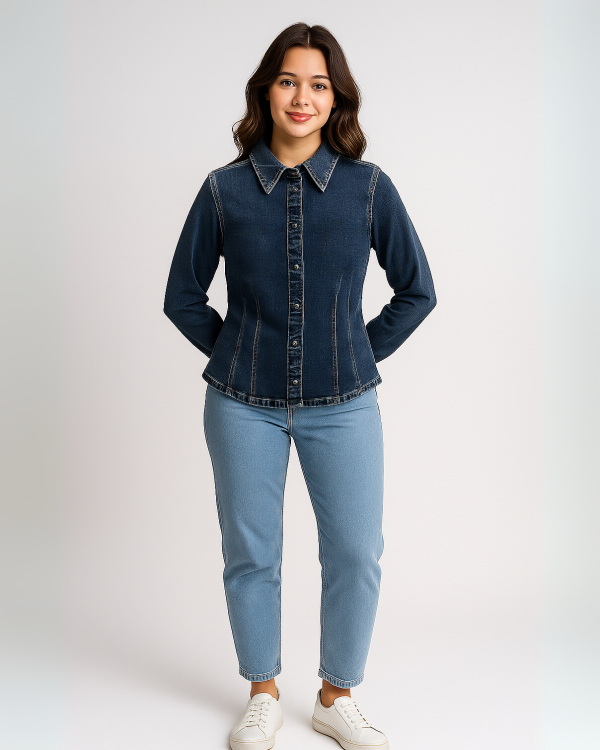 Ladies Dark Wash Shaped Denim Shirt