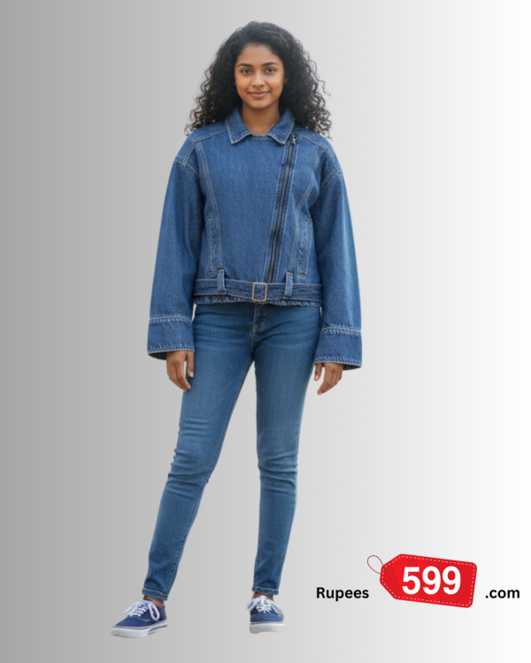Elevate your wardrobe with the Ladies Denim Rider Jacket – Medium Wash. Crafted from durable denim, this jacket features a modern rider-style silhouette with a zip-up front, structured shoulders, and sleek stitching. Its medium wash finish adds versatility, making it easy to pair with jeans, skirts, dresses, or your favorite casual outfits. Perfect for day-to-night wear, this jacket delivers a subtle edge while staying effortlessly chic.