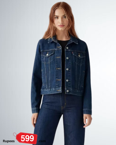 Ladies Denim Trucker Jacket – Dark Blue