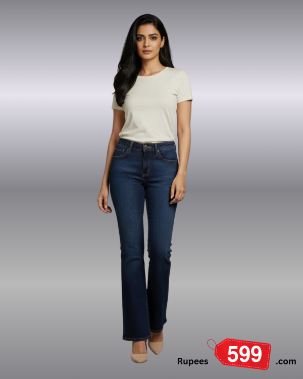 Step into effortless style with our Ladies’ High‑Rise Bootcut Denim, designed for a flattering silhouette and all‑day comfort. Crafted from premium stretch denim, these jeans offer a smooth fit through the waist and hips while gently widening from the knee to create a balanced, elongating look.