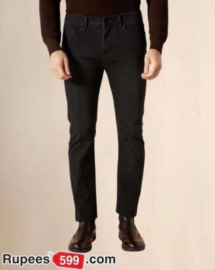 This black denim jeans is definitely a wardrobe staple. It features a classic five-pocket and belt loops to waistband accented with subtle bleaching.